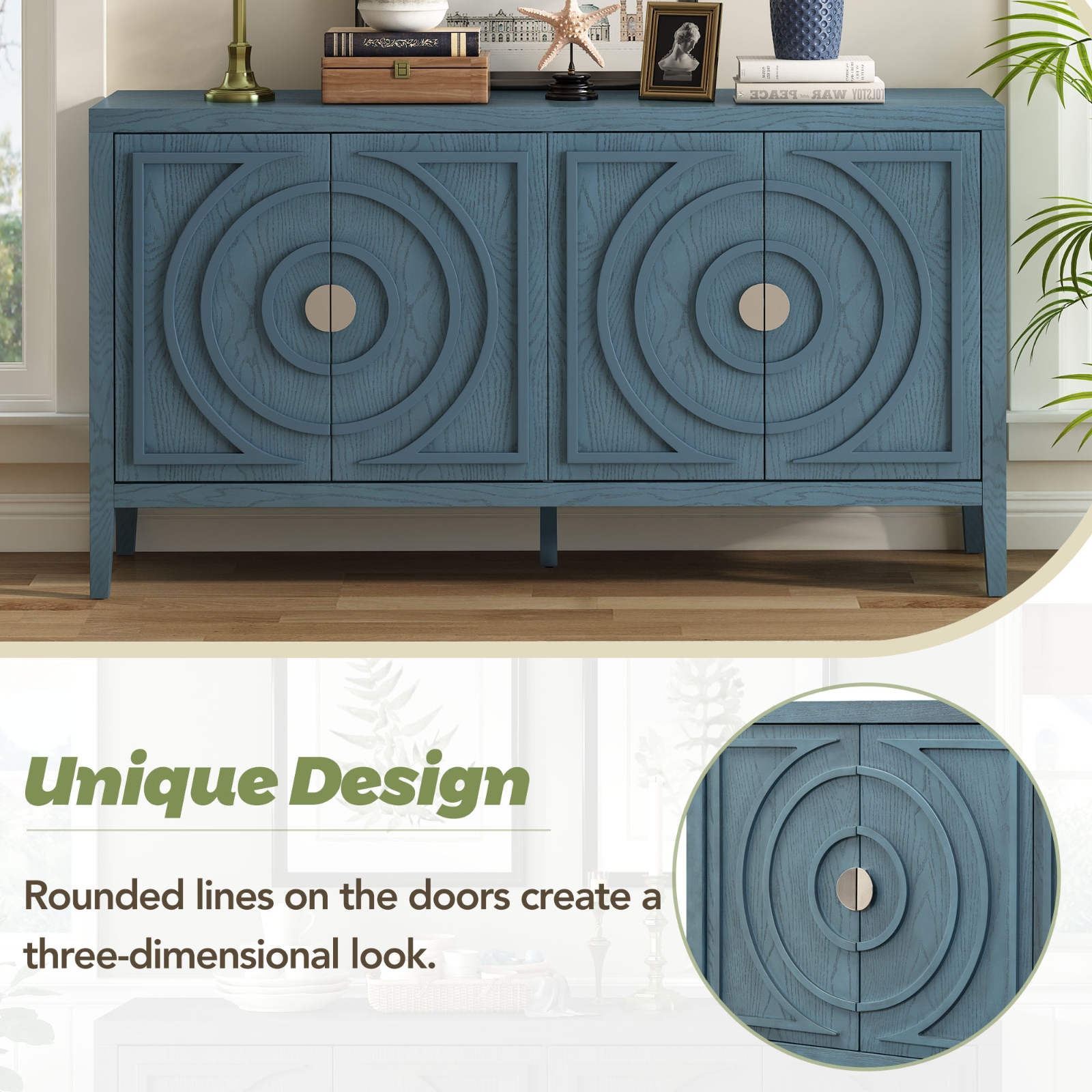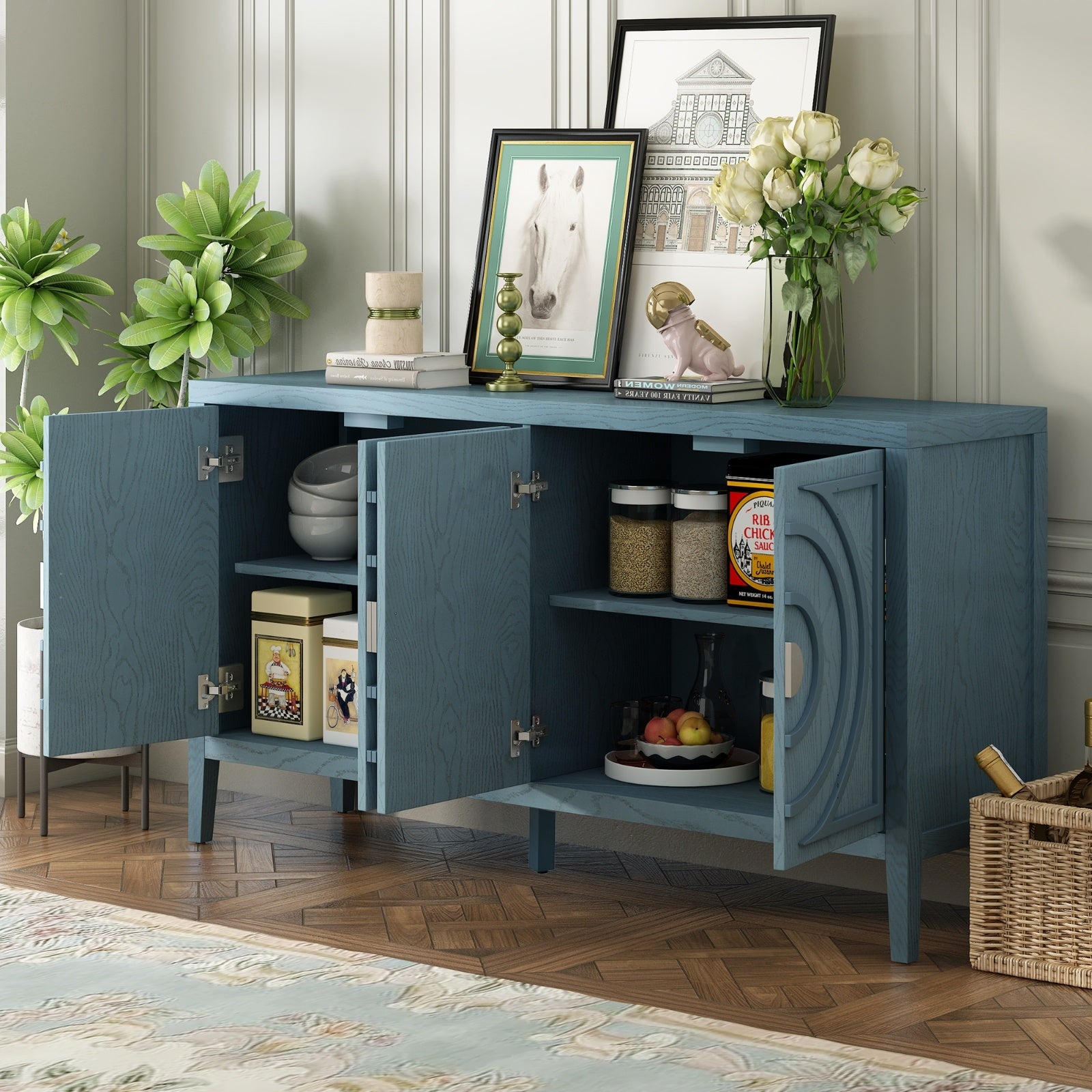 This retro sideboard has four doors with rounded lines on the doors to create a three-dimensional look. You can put it in the kitchen, entryway or living room, the country style cabinet adds a warm atmosphere to your home. You can choose from four colors, antique blue, gray, white and black. Each color presents a different style. Gray and black are more classic, and white and antique blue are brighter and more prominent. They can be styled with your decor and will fit perfectly into any room.