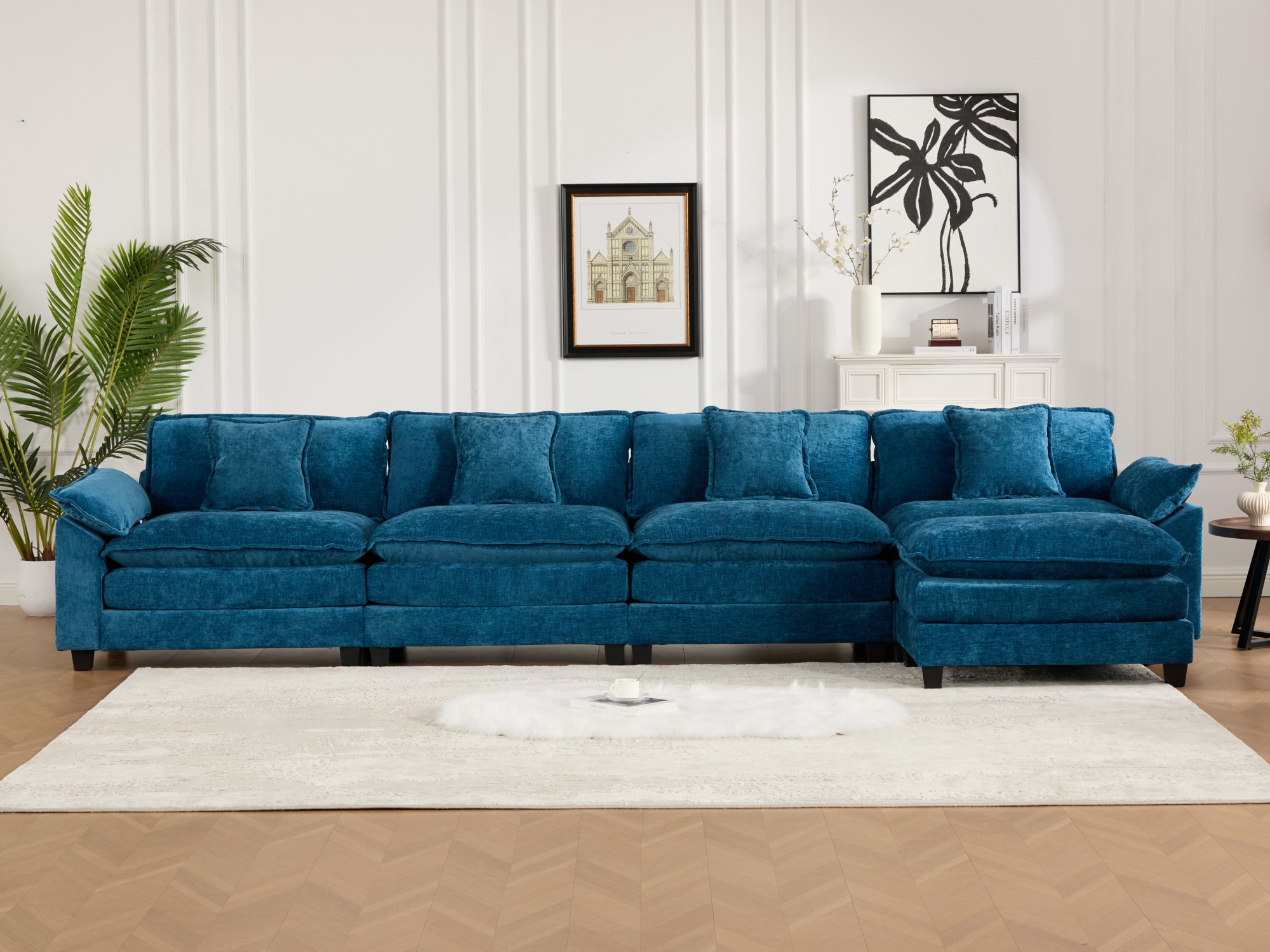 Product Name:Wider Armrest 3 Seats (Ottoman is not included), Modern Sectional Couch, for Living Room Bedroom and Apartment, Comfy Double Layer Upholstered Seat Cushion, Breathable Chenille Fabric,Blue,SW5044BL